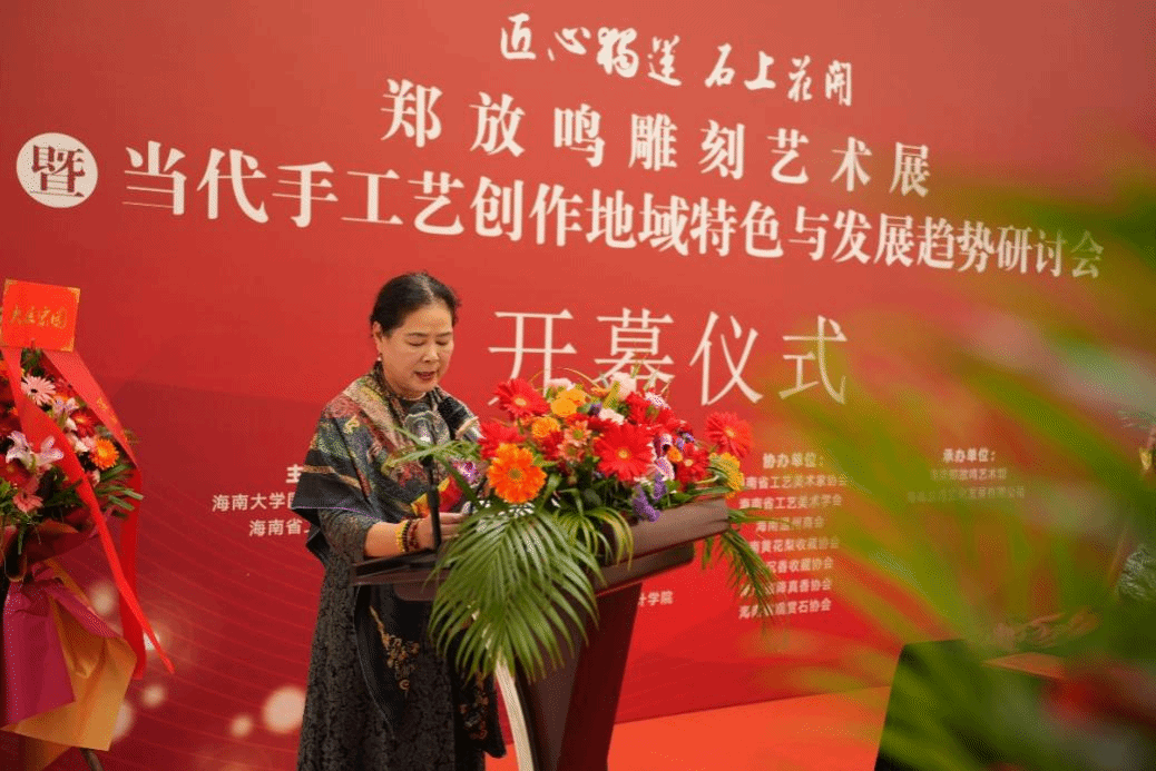 郑放鸣老师对各相关单位的大力支持表示感谢,并指出此次展览是她艺术生涯的一次总结,也是创新传播海南雕刻艺术文化的探索实践。