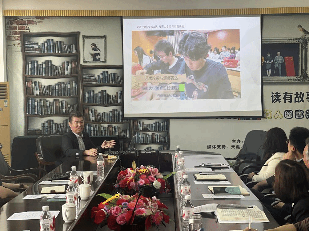 调研图书馆环境提升及疗愈空间共建会议在海南大学海甸校区图书馆北楼602会议室召开。海南大学图书馆党委书记邓泽明、执行馆长郭晶、副馆长颜洪、读者服务部主任杨有红、副主任王梅、读者培育中心李海珠老师,学院副院长元志东、美术系责任教授包格日乐吐、音乐系责任教授许潇尹、美术系副主任束博等参会。